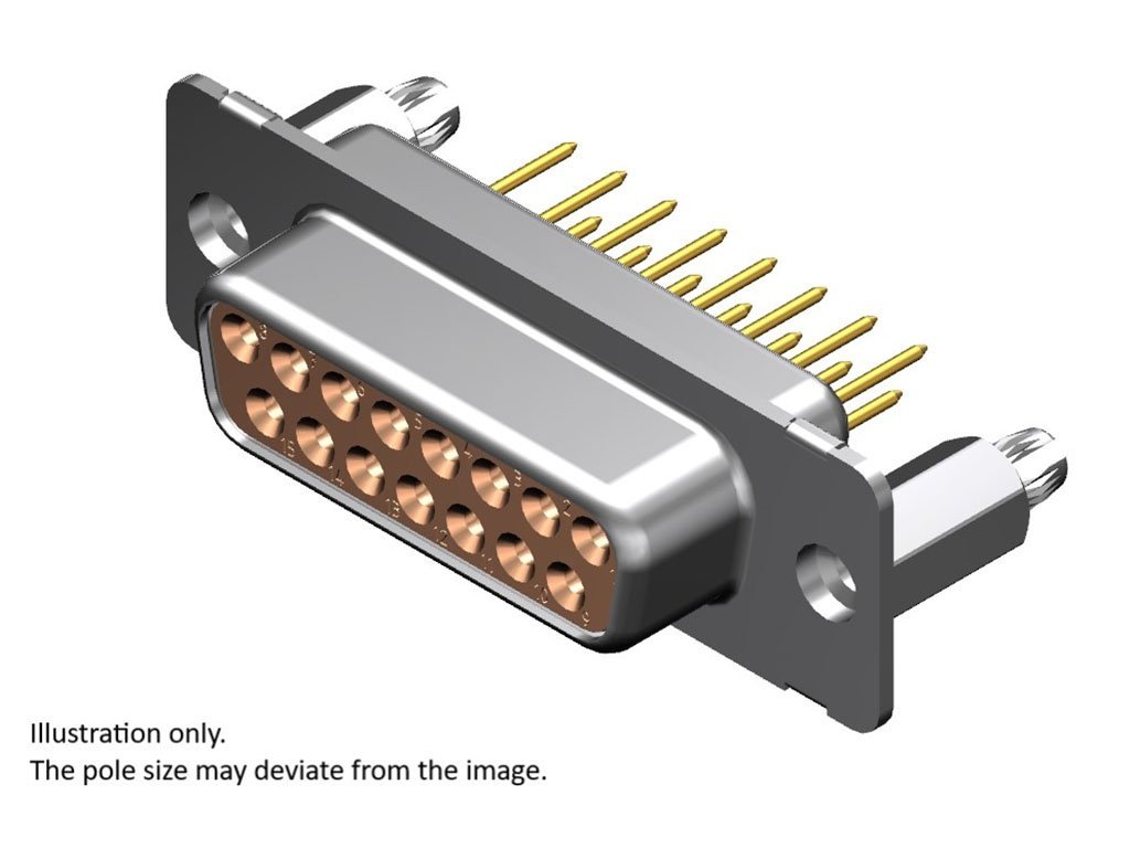 FCT Standard-Density D-Sub Connector, Female, Straight, PCB Through Hole, 11.70mm Tail Length, Gold Plating, 200 Mating Cycles, 8.10mm #4-40 Snap-in Bolt, 25 Circuits, Heat Resistant Natural Insulator