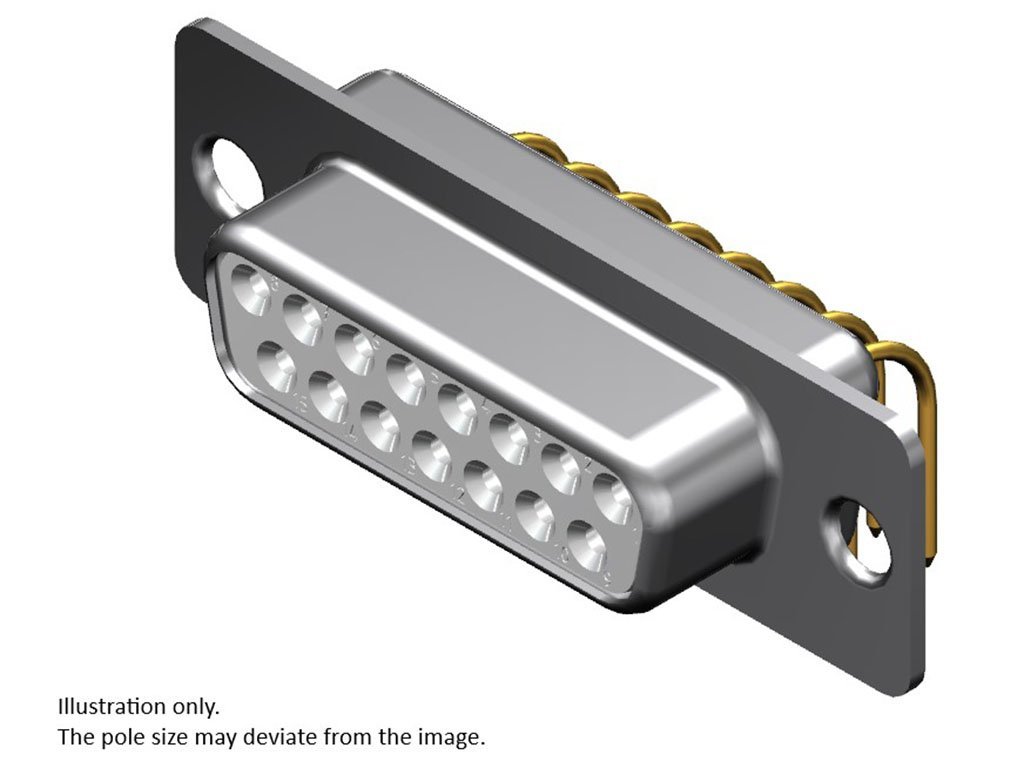 FCT Standard-Density D-Sub Connector, Female, Right-Angle, PCB Through Hole, 10.00mm Tail Length, Gold Plating, 500 Mating Cycles, 9 Circuits, White Insulator