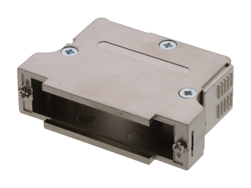FCT Plastic Backshell for D-Sub Connector, Shielded, Shell Size 5, Straight or 90° Angle Cable Outlet, Flat Body, with Grip Cover and #4-40 Locking Screws, Individual Packing