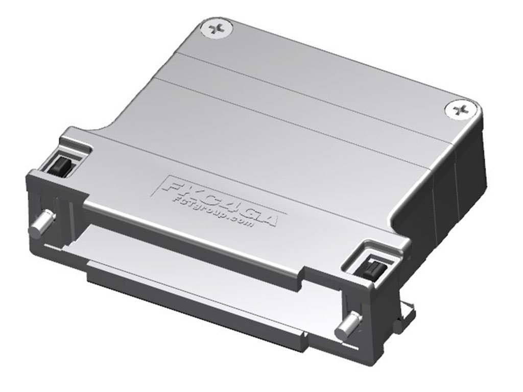 FCT Plastic Backshell for D-Sub Connector, Shielded, Shell Size 4, Straight Cable Outlet, Large Inner Chamber, with #4-40 Locking Screws