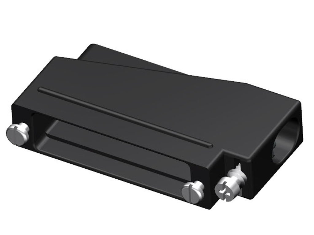 FCT One-Piece Plastic Backshell for D-Sub Connector, Black, Shell Size 3, 90° Angle Cable Outlet, with #4-40 Locking Screws