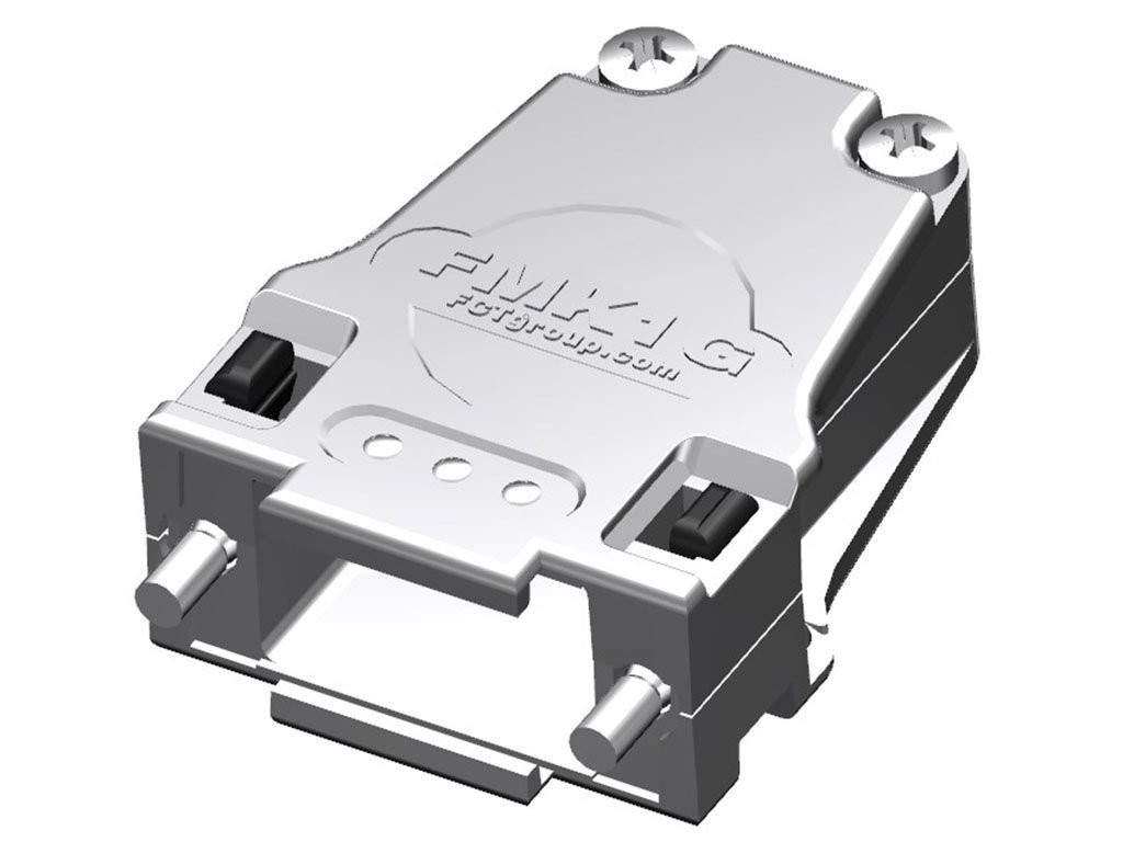 FCT Metal Backshell for D-Sub Connector, Shell Size 1, Closed Straight Cable Outlet, Large Inner Chamber, with Blind Flange and #4-40 Locking Screws