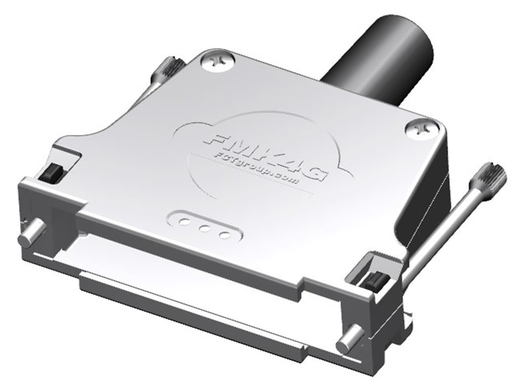 FCT Metal Backshell for D-Sub Connector, Shell Size 4, Straight Cable Outlet, Large Inner Chamber, with Rubber Bushing and #4-40 Knurled Thumb Screws