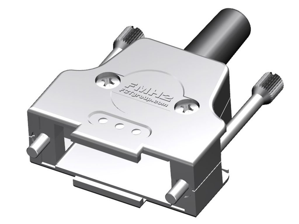 FCT Metal Backshell for D-Sub Connector, Shell Size 2, Straight Cable Outlet, with Rubber Bushing and #4-40 Knurled Thumb Screws
