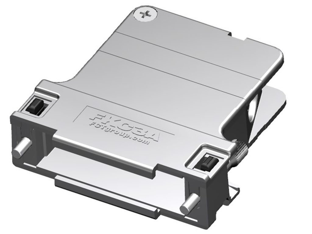 FCT Plastic Backshell for D-Sub Connector, Shielded, Shell Size 3, 70° Angle Cable Outlet, Large Inner Chamber, with #4-40 Knurled Thumb Screws, Individually Packed