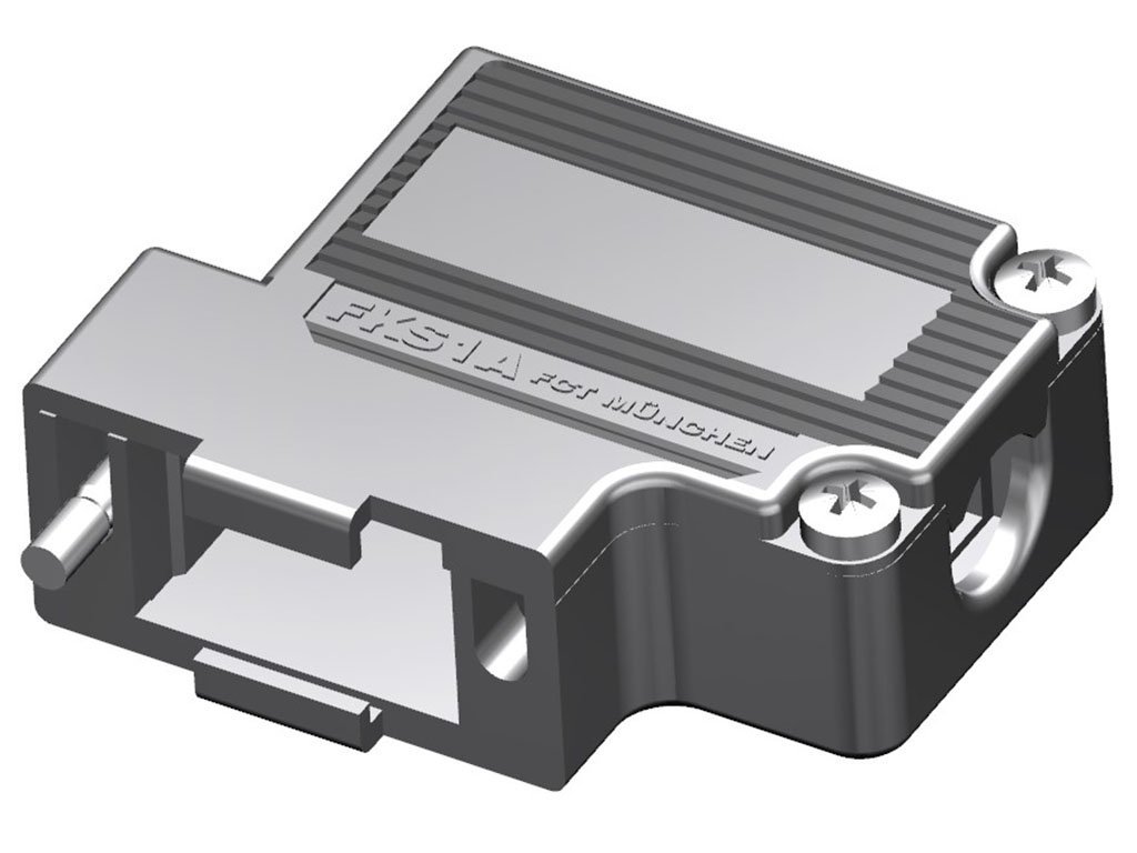 FCT Plastic Backshell for D-Sub Connector, Shielded, Shell Size 1, 90° Angle Cable Outlet, Low Body, with #4-40 Locking Screws, Individually Packed