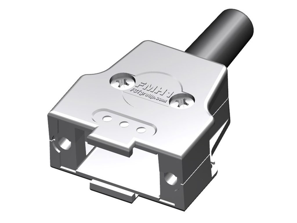 FCT Metal Backshell for D-Sub Connector, Shell Size 1, Straight Cable Outlet, with Rubber Bushing, Hood Snapped Together