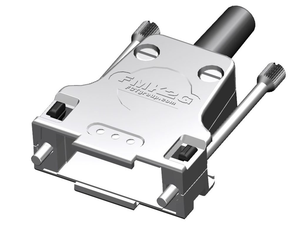 FCT Metal Backshell for D-Sub Connector, Shell Size 2, Straight Cable Outlet, Large Inner Chamber, Non-magnetic, with #4-40 Knurled Thumb Screws,