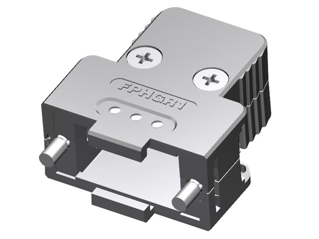 FCT Plastic Backshell for D-Sub Connector, Shielded, Shell Size 1, Straight Cable Outlet, Flat Body, with M3 Locking Screws, Individual Packing