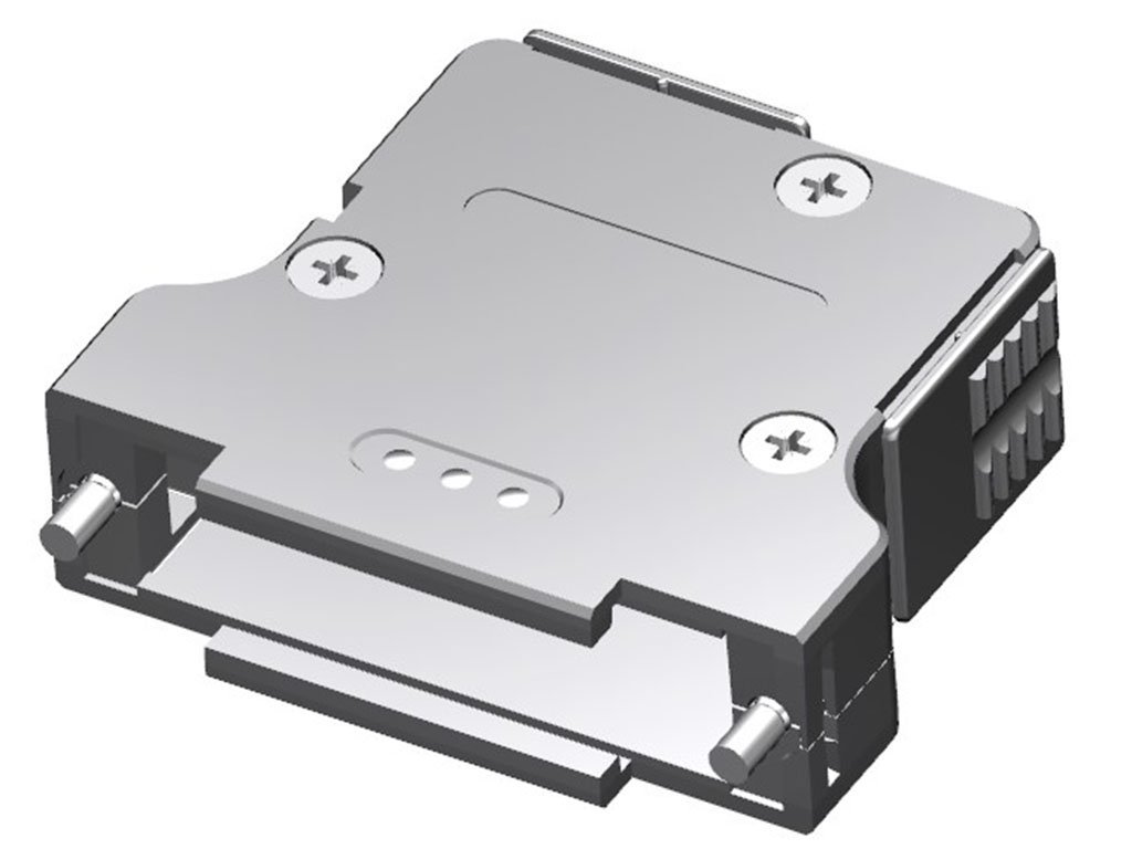 FCT Plastic Backshell for D-Sub Connector, Shielded, Shell Size 3, Straight or 90° Angle Cable Outlet, Flat Body, with Grip Cover and M3 Locking Screws, Individual Packing