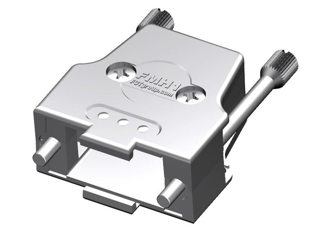 FCT Metal Backshell for D-Sub Connector, Shell Size 1, Straight Cable Outlet, with #4-40 Knurled Thumb Screws