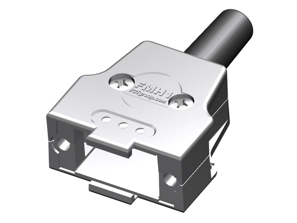 FCT Metal Backshell for D-Sub Connector, Shell Size 1, Straight Cable Outlet, with Rubber Bushing