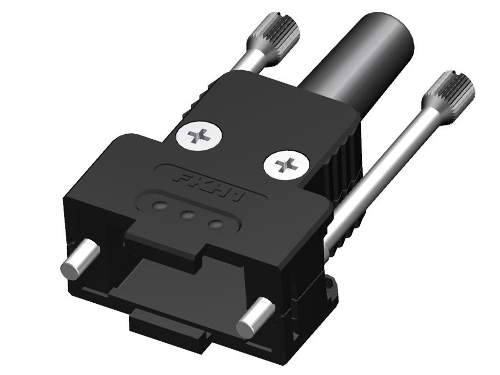 FCT Plastic Backshell for D-Sub Connector, Black, Shell Size 1, Straight Cable Outlet, with Rubber Bushing and #4-40 Knurled Thumb Screws