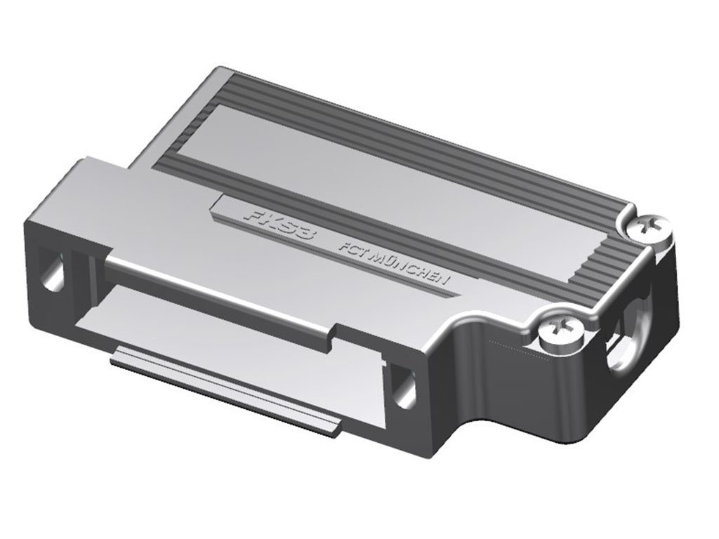 FCT Plastic Backshell for D-Sub Connector, Shielded, Shell Size 3, 90° Angle Cable Outlet, Low Body, with #4-40 Mounted Threaded Insert for Slide Locks, Individually Packed