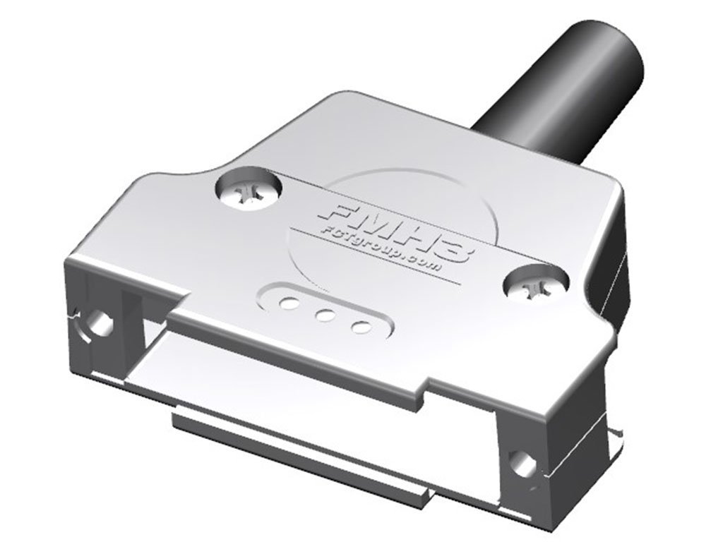 FCT Metal Backshell for D-Sub Connector, Shell Size 3, Straight Cable Outlet, with Rubber Bushing, Hood Snapped Together