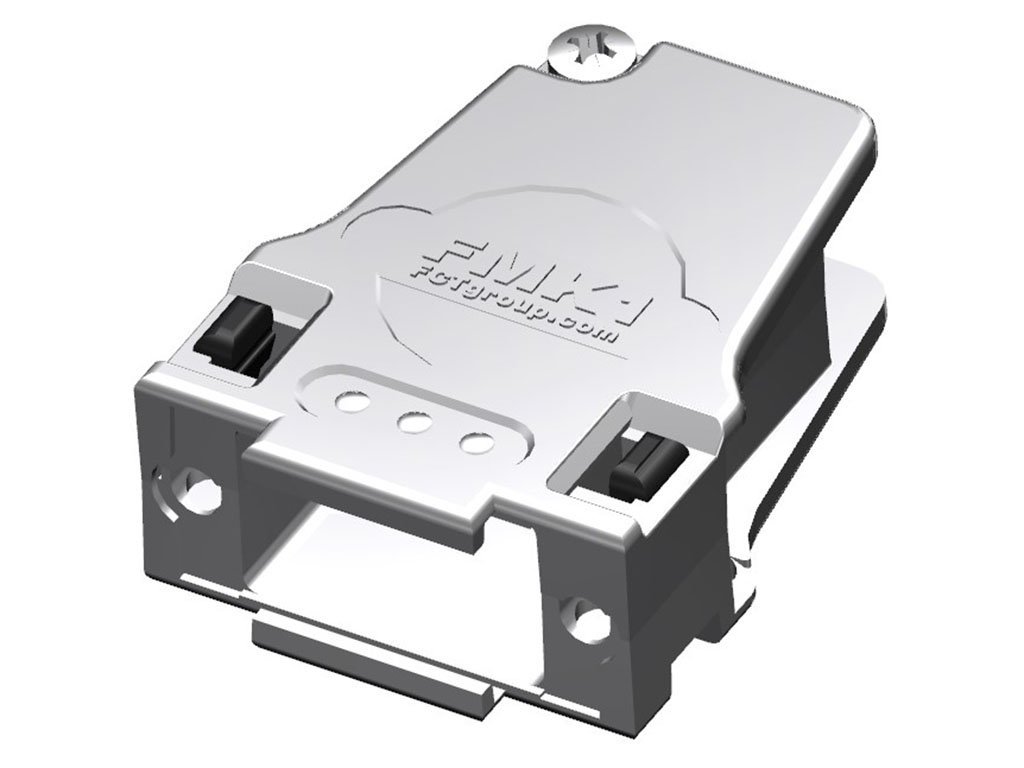 FCT Metal Backshell for D-Sub Connector, Shell Size 1, 45° Angle Cable Outlet, Large Inner Chamber