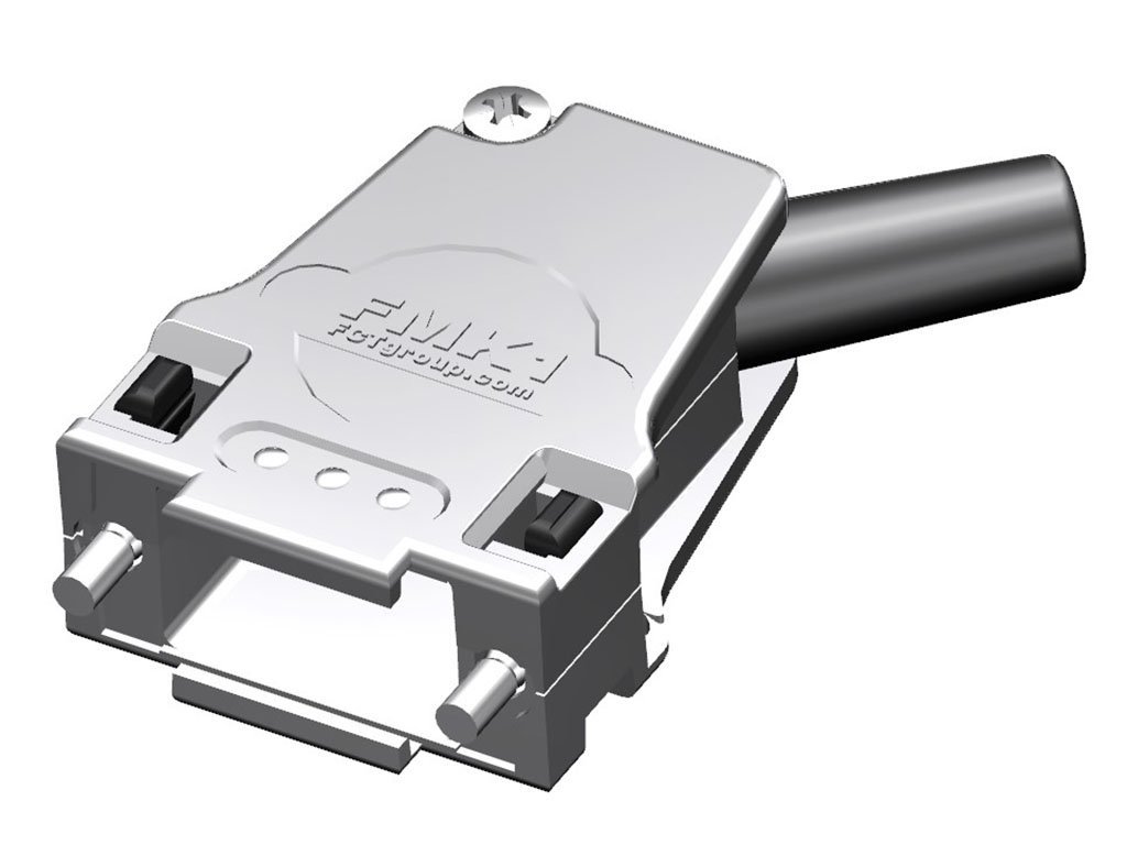 FCT Metal Backshell for D-Sub Connector, Shell Size 1, 45° Angle Cable Outlet, Large Inner Chamber, with Rubber Bushing, #4-40 Locking Screws, and Insulating Foil