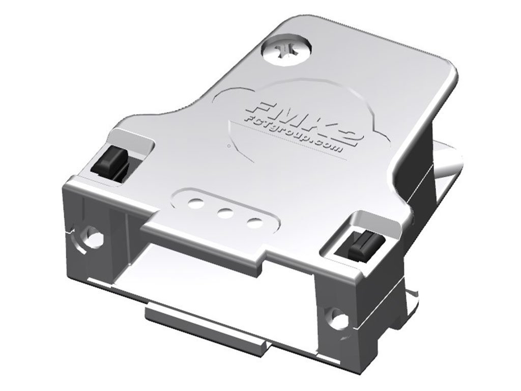 FCT Metal Backshell for D-Sub Connector, Shell Size 2, 45° Angle Cable Outlet, Large Inner Chamber, with M2.5 Threaded Insert