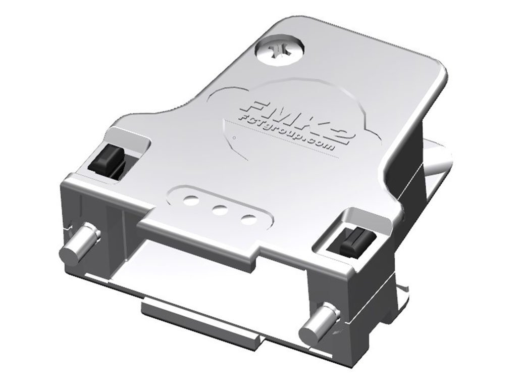 FCT Metal Backshell for D-Sub Connector, Shell Size 2, 45° Angle Cable Outlet, Large Inner Chamber, with #4-40 Locking Screws