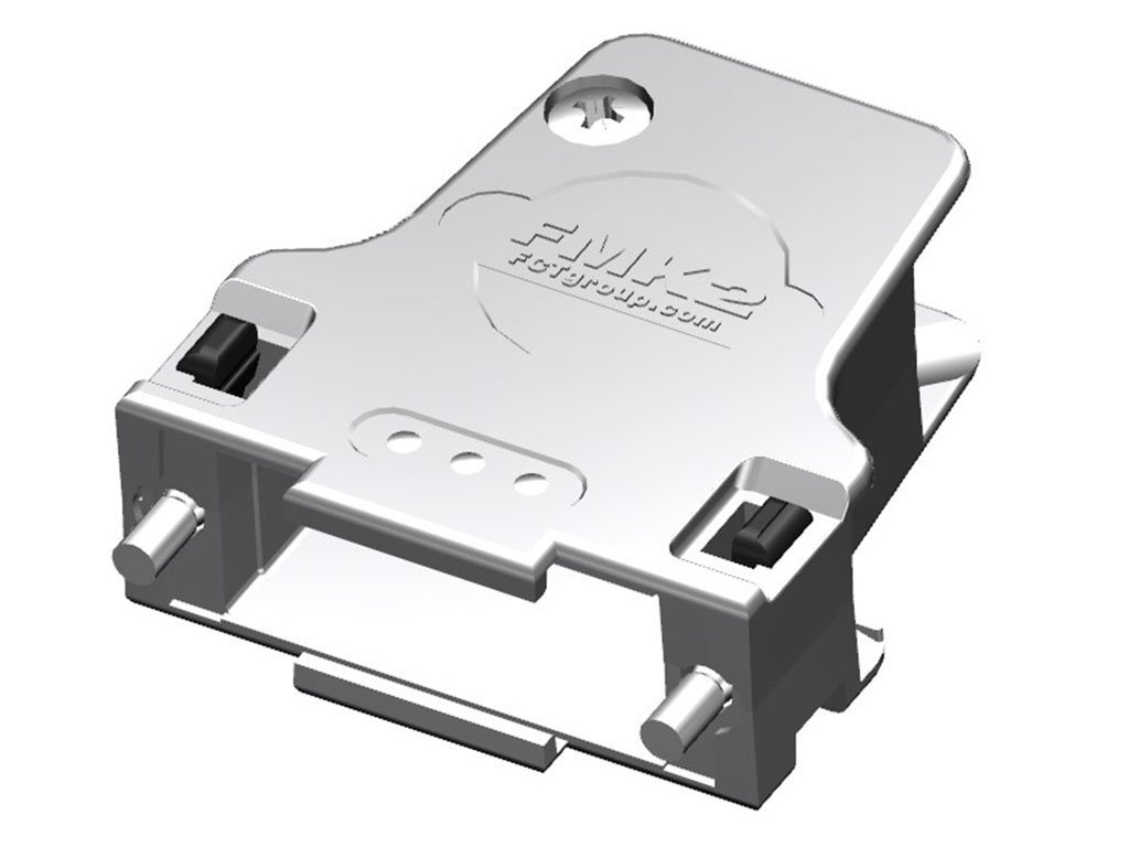 FCT Metal Backshell for D-Sub Connector, Shell Size 2, 45° Angle Cable Outlet, Large Inner Chamber, with M3 Locking Screws