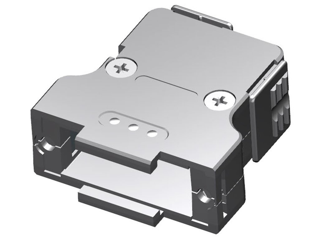 FCT Plastic Backshell for D-Sub Connector, Shielded, Shell Size 2, Straight or 90° Angle Cable Outlet, Flat Body, with Grip Cover and M2.5 Threaded Insert