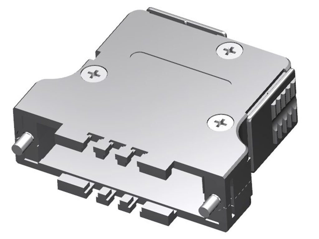 FCT Plastic Backshell for D-Sub Connector, Shielded, Shell Size 3, Straight or 90° Angle Cable Outlet, Flat Body, with Grip Cover, Strain Relief, and #4-40 Locking Screws, Individual Packing