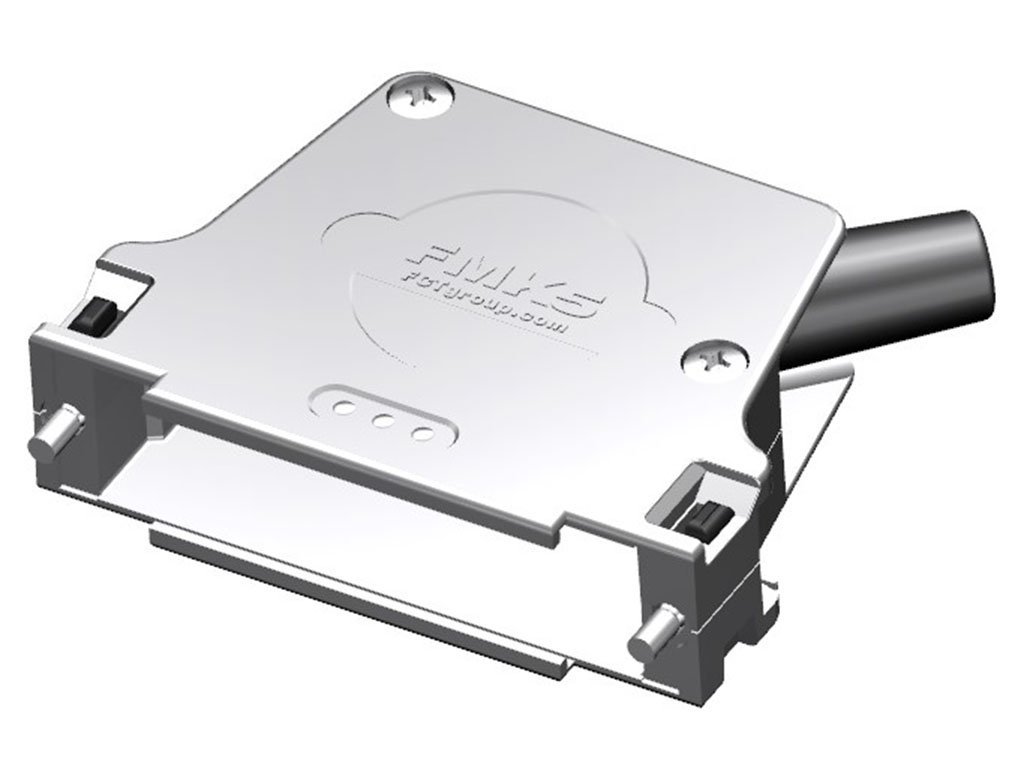 FCT Metal Backshell for D-Sub Connector, Shell Size 5, 45° Angle Cable Outlet, Large Inner Chamber, with Rubber Bushing, with #4-40 Locking Screws