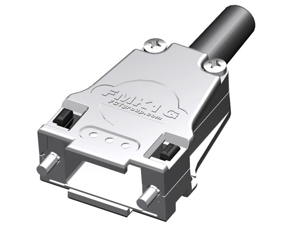 FCT Metal Backshell for D-Sub Connector, Shell Size 1, Straight Cable Outlet, Large Inner Chamber, with Rubber Bushing and #4-40 Locking Screws