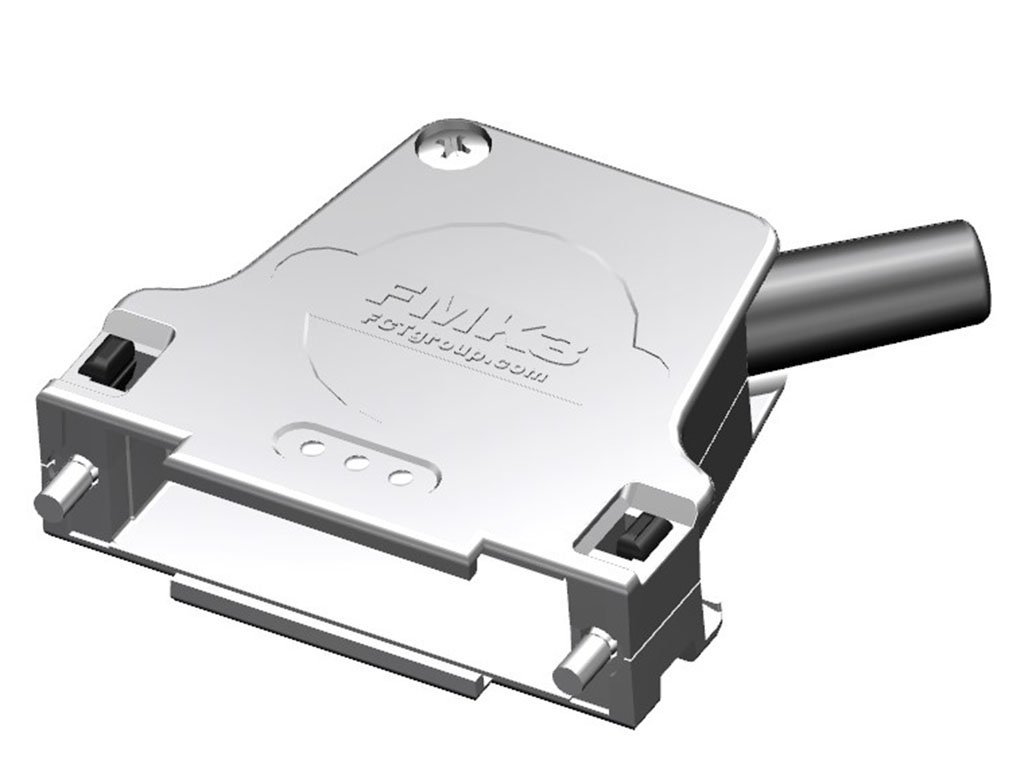 FCT Metal Backshell for D-Sub Connector, Shell Size 3, 45° Angle Cable Outlet, Large Inner Chamber, with Rubber Bushing and #4-40 Locking Screws