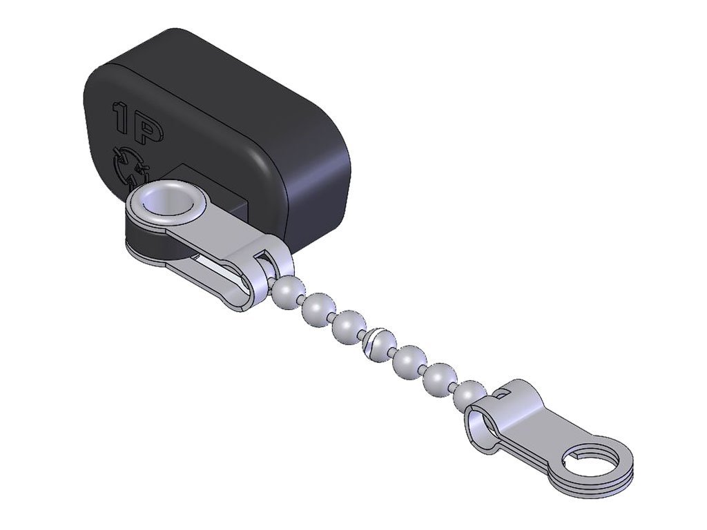FCT Plastic Dust Cap for Size 1 Male D-sub, Black, with 75.00mm Chain and Clip, Antistatic