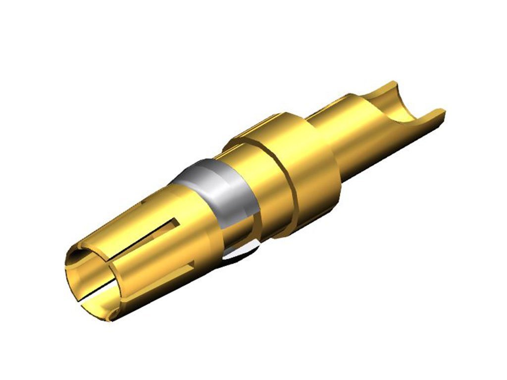 FCT High Power Contact, Female, Straight, Solder Cup, 0.80µm Gold Mating Plating, 0.20µm Gold Termination Plating, Split Tine, 20.0A, 12-16 AWG
