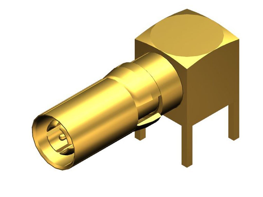 FCT DIN Coaxial Contact, 5 Pins, Female, Right-Angle, PCB Through Hole, 75 Ohms, 1.30µm Gold Plating