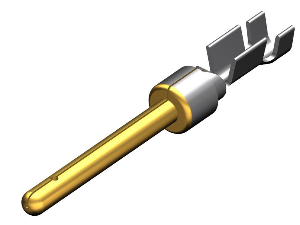 FCT Stamped Contact, Male, Crimp, 0.10µm Gold Mating Plating, 24-28 AWG, 10,000 pieces on reel – Left Side Entry with Turnaround