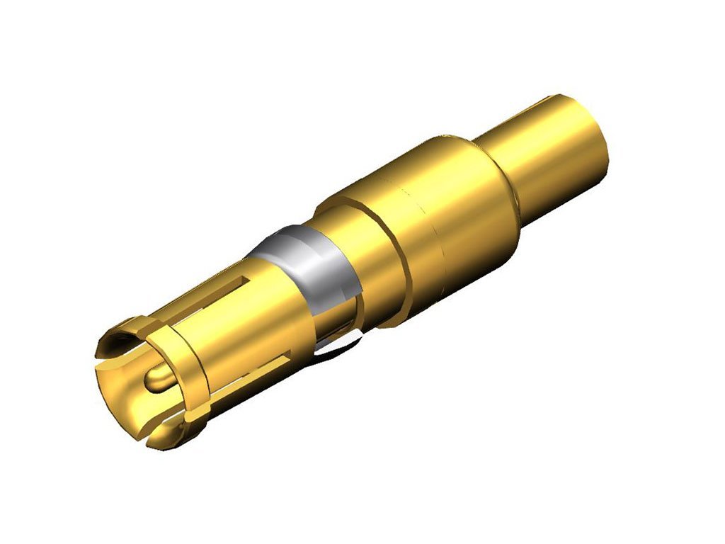 FCT Coaxial Contact, Female, 4-Split Tine, Straight, Crimp, 50 Ohms, 1.30µm Gold Plating, without Inspection Hole, for RG-174U, RG-188AU, or RG-316U Cable