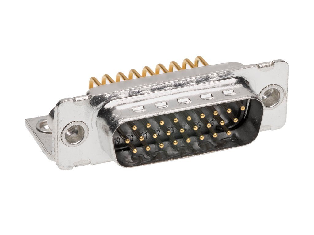 FCT High-Density D-Sub Connector, Male, Right-Angle, PCB Through Hole, 0.80µm Gold Plating, with Machined Contacts and Metal Bracket, 26 Circuits