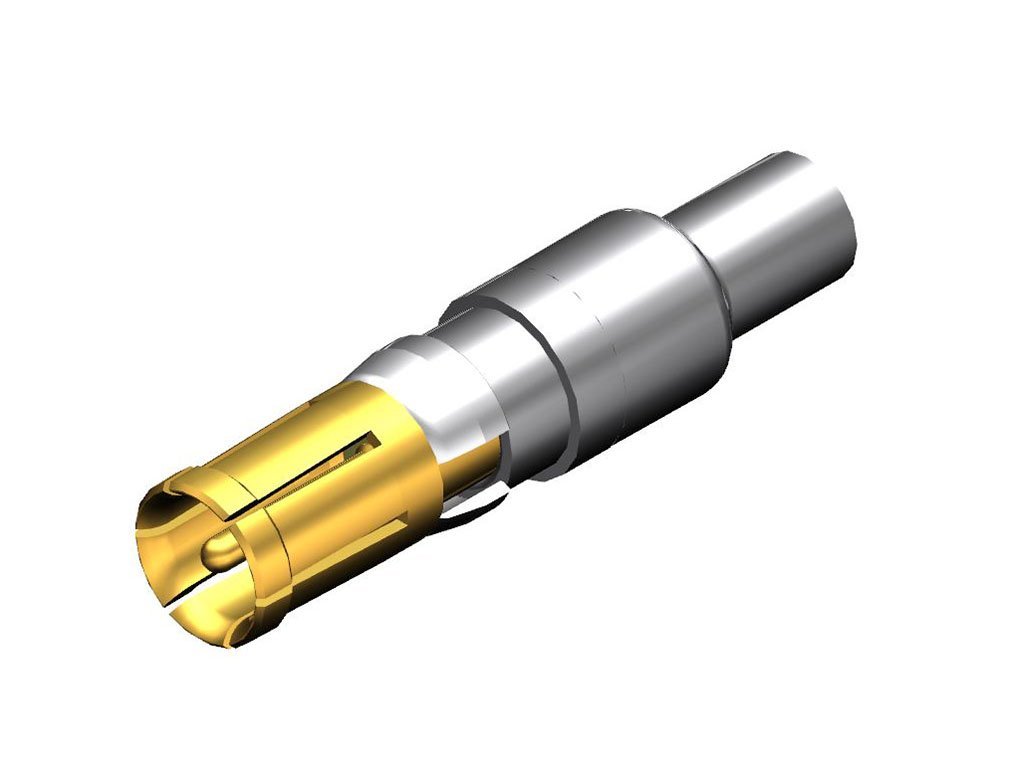 FCT Coaxial Contact, Female, Straight, Crimp, 50 Ohms, 5.00µm Gold over Copper Plating, for RG-174U, RG-188AU, or RG-316U Cable