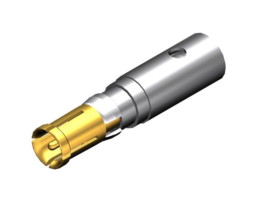 FCT Coaxial Contact, Female, 4-Split Tine, Straight, Crimp, 50 Ohms, 5.00µm Gold over Copper Plating, for RG-58CU or RG-141AU Cable