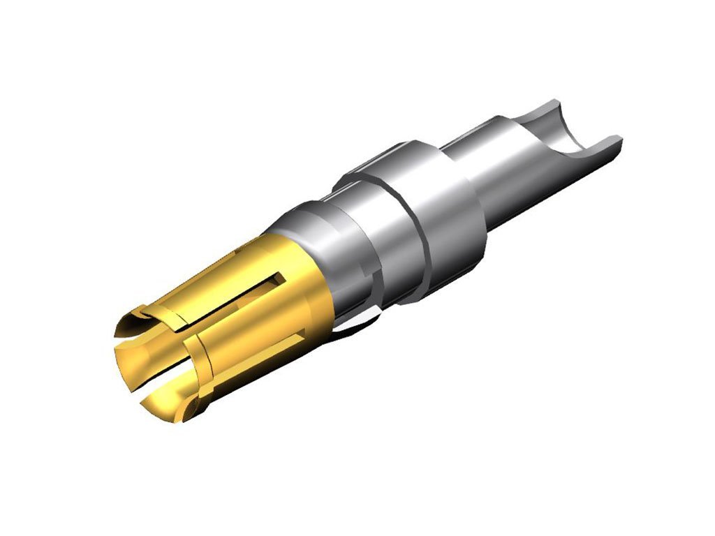 FCT High Power Contact, Female, Straight, Solder Cup, 5.00µm Gold Mating Plating, 5.00µm Tin over Silver/Copper Termination Plating, Split Tine, 20.0A, 12-16 AWG