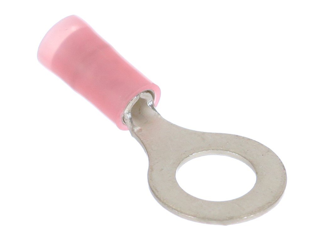 Avikrimp Ring Tongue Terminal for 18 to 22 AWG Wire, Stud Size 1/4″ (M6), Length 26.90mm, Red, Carton
