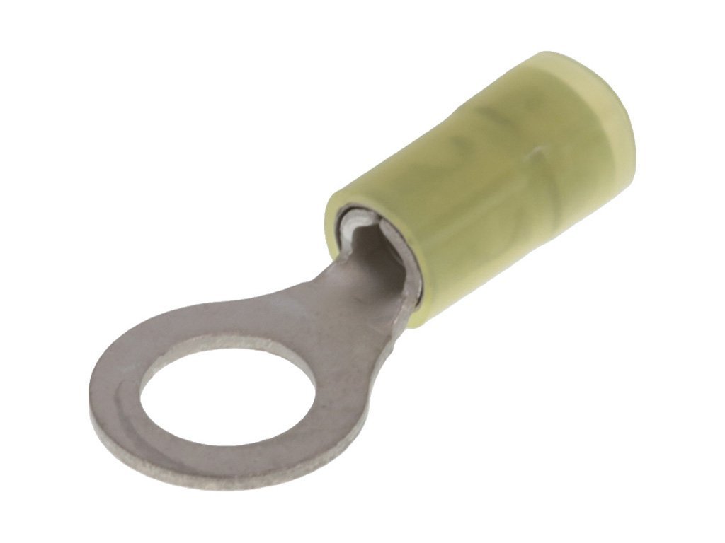 Avikrimp Ring Tongue Terminal for 10 to 12 AWG Wire, Stud Size 5/16″ (M8), Length 31.95mm, Yellow, Carton