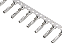 MX150L Female Terminal for 18-22 AWG Wire, Tin Plated, Metal Strip Carrier