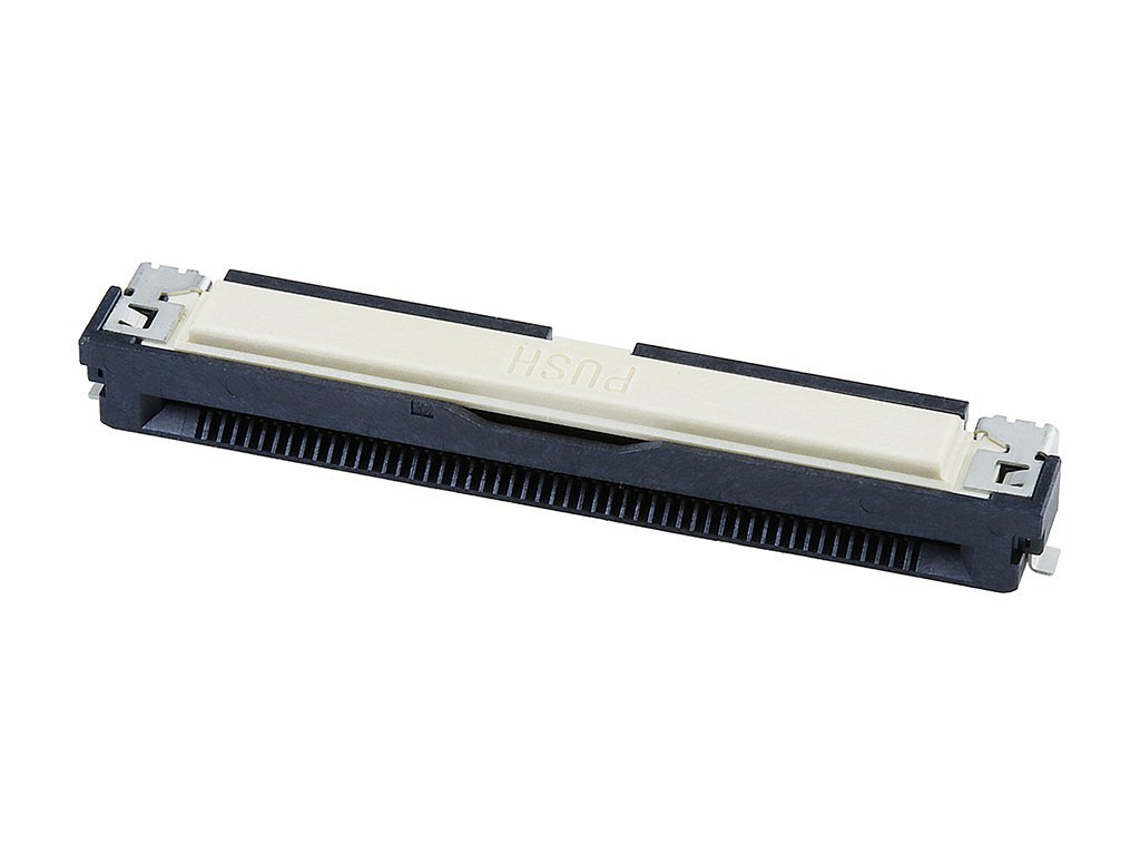 Easy-On FFC/FPC One-Touch Connector, 0.50mm Pitch, Right-Angle, Bottom Contact, 4.46mm Height, 105°C Operating Temperature, 50 Circuits, Gold (Au) Plating, with Ground Terminal