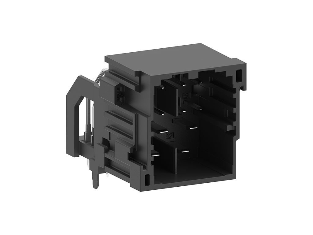 stAK50h Right-Angle Hybrid Header, 12 Circuits, Key 1, Black, Tray