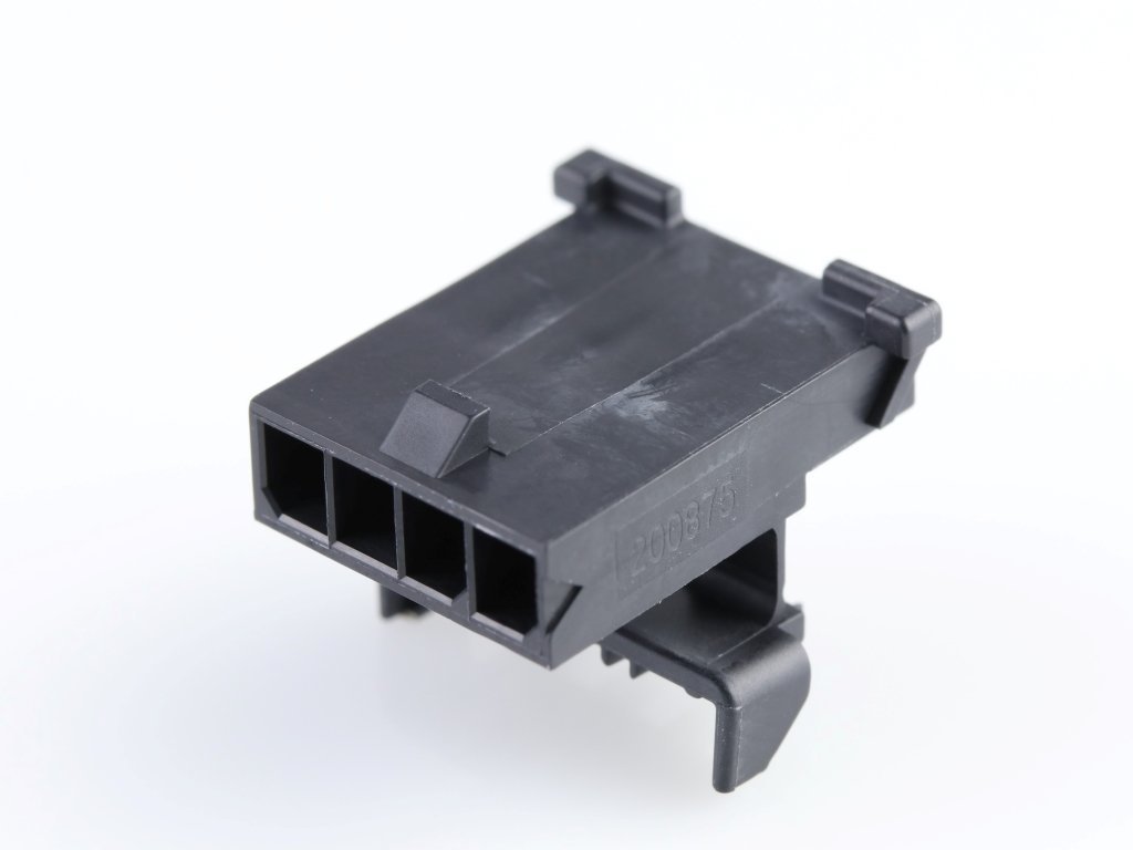 Micro-Fit TPA Free-Hanging Plug Housing, Single Row, 4 Circuits, UL 94V-0, Low-Halogen, Black