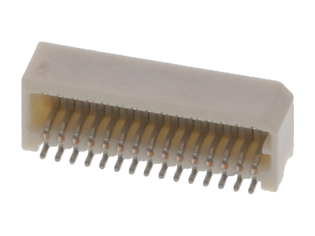 SlimStack Board-to-Board Connector, 0.80mm Pitch, Plug, 5.65 or 6.65mm Mated Height, 30 Circuits, Right-Angle, without Boss