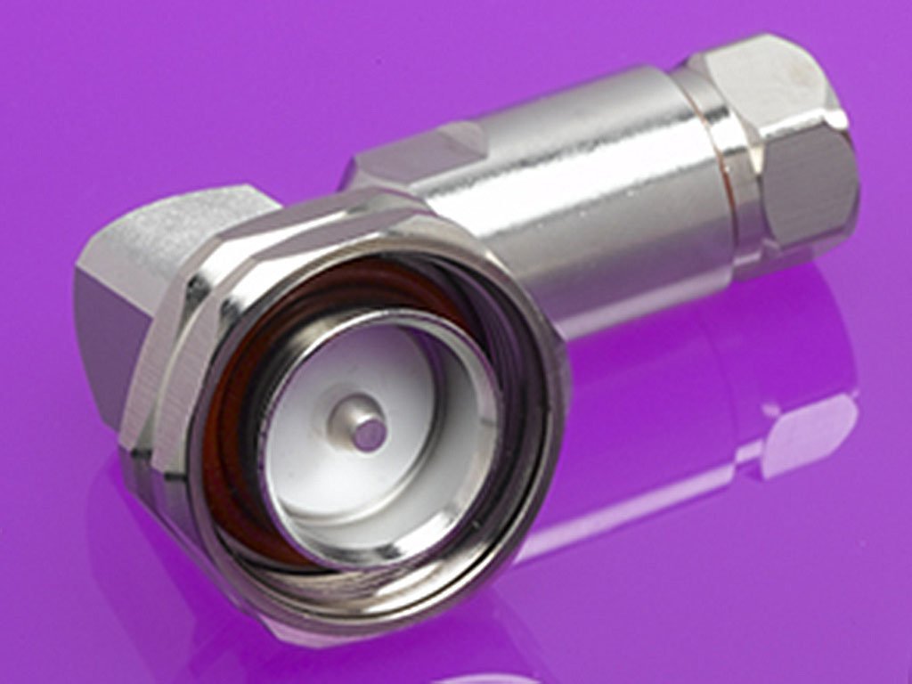 7/16 DIN Plug, Right-Angle, Clamp for 1/2″ Helical Corrugated, One Piece Per Carton, 50 Ohms