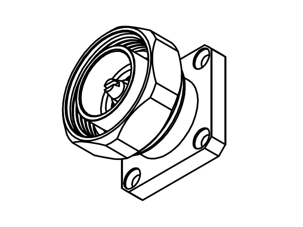 7/16 DIN Plug, Straight, 4-Hole Flange Mount, IP68, One Piece Per Carton, 50 Ohms