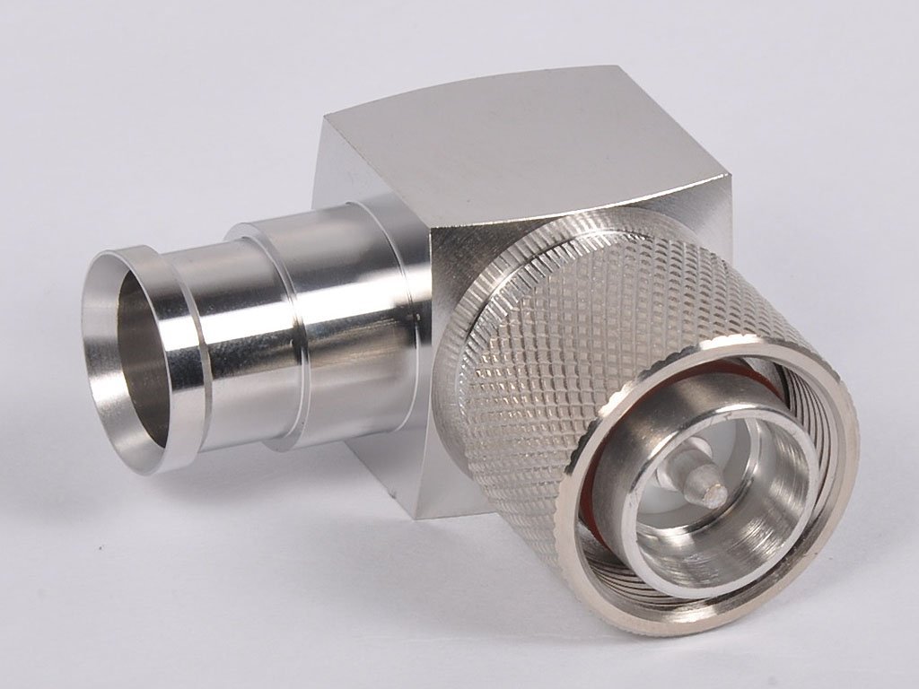 50 Ohms, 4.3-10 Plug, Right-Angle, Hand Tight, for 1/2″ Super Flexible Coaxial Cable, One Piece Per Carton