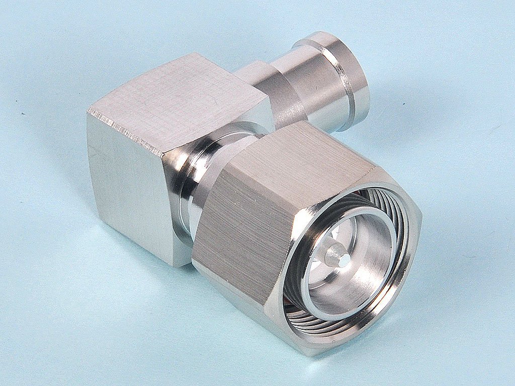 50 Ohms, 4.3-10 Plug, Right-Angle, Solder, for 3/8″ Super Flexible Coaxial Cable, One Piece Per Carton