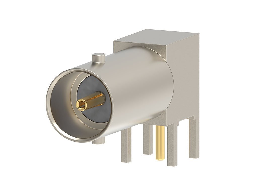 Mini-BNC Jack, Right-Angle, PCB Receptacle, Tray, 75 Ohms